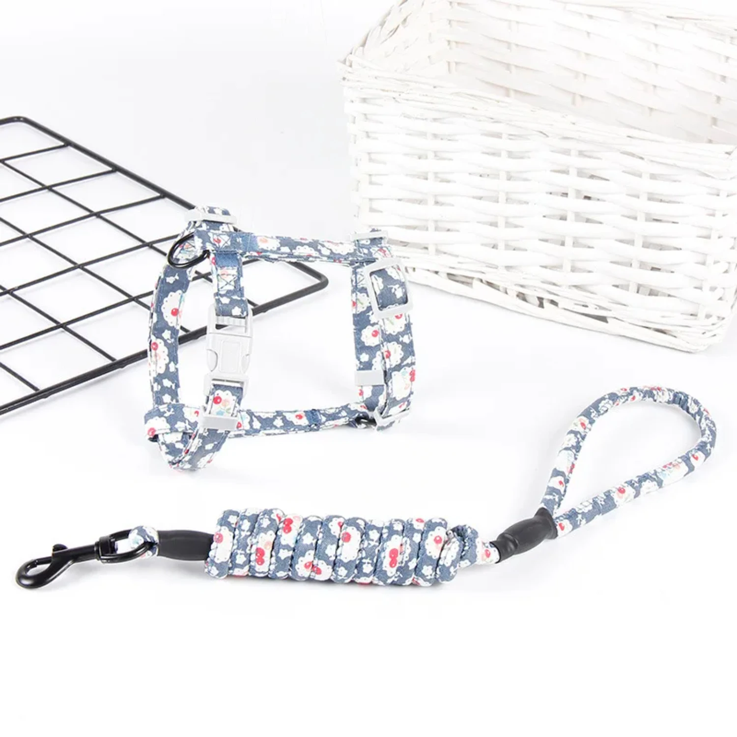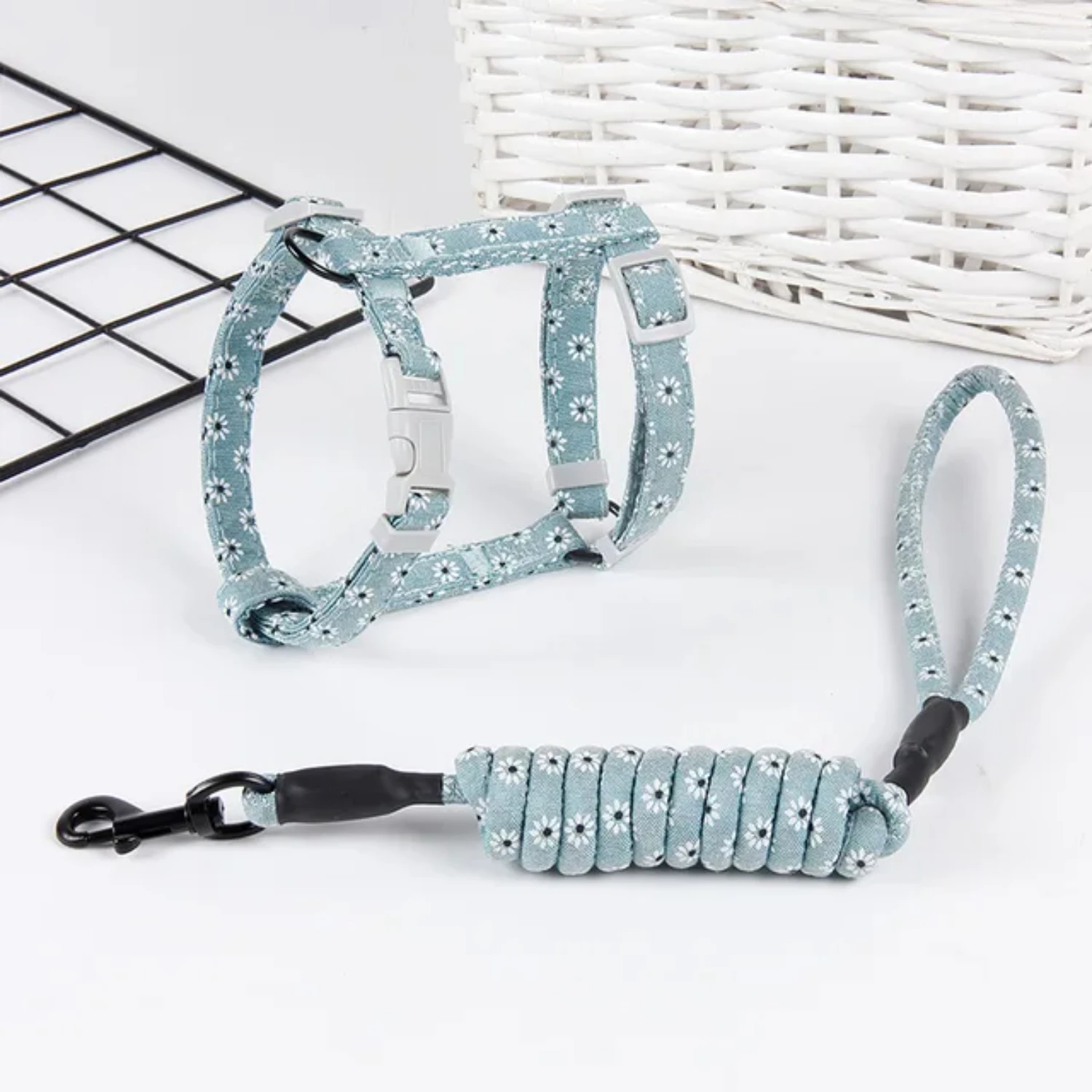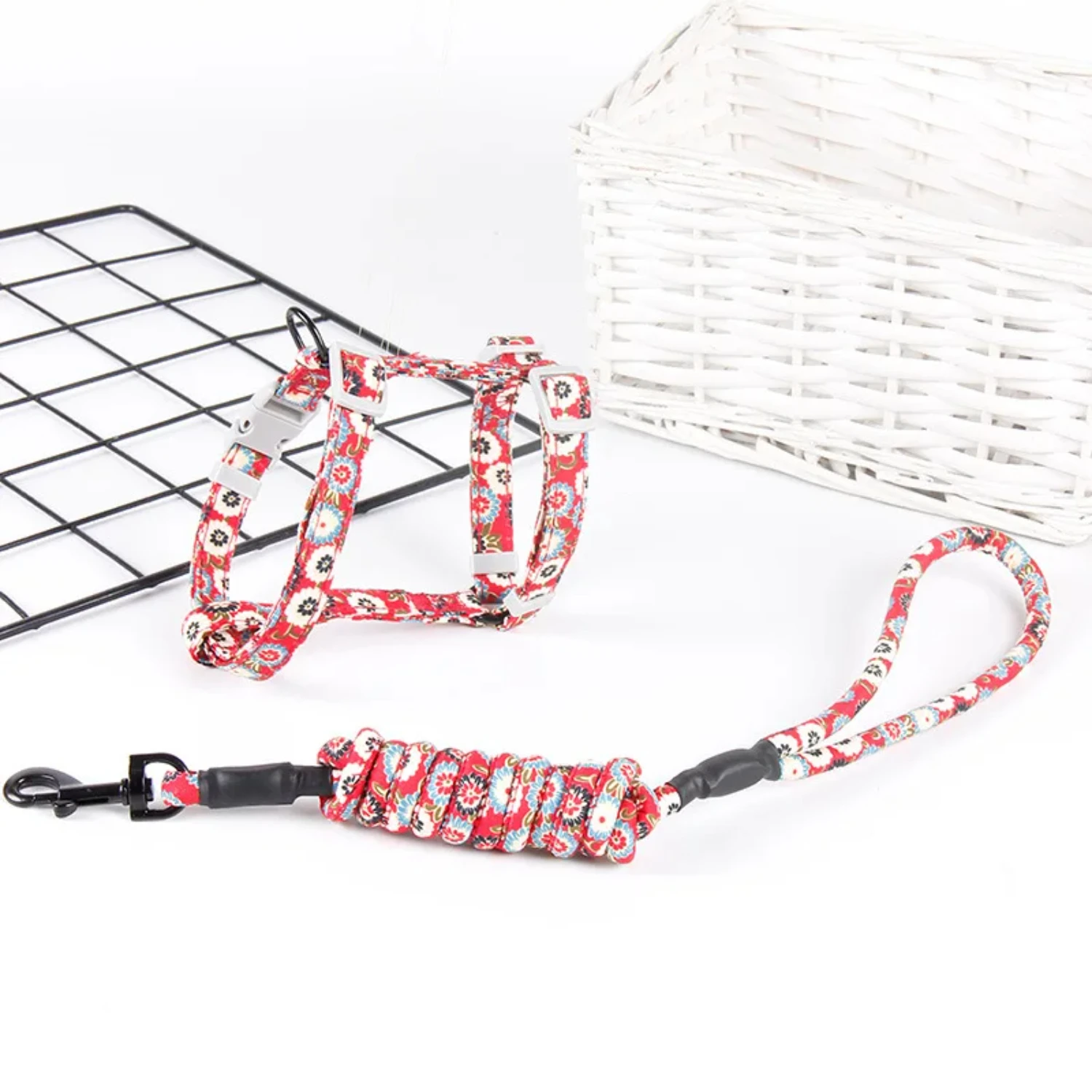 1. This adjustable cat harness and leash set is perfect for taking your feline friend for a walk. It features a quick release buckle for easy on and off, as well as a decorative lace design for added flair.